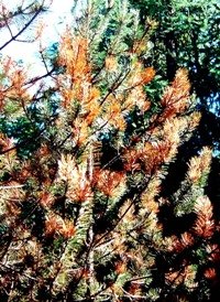 Aus den Untersuchungsergebnissen wird deutlich, dass die schon seit langem bekannten ("klassischen") Triebkrankheiten in den zurückliegenden Jahren nur lokal bzw. temporär Probleme verursachten. Beispielsweise wurden im nordostdeutschen Tiefland kaum Symptome des Kieferntriebschwindens (Cenangium ferruginosum) registriert. Zu Schäden kommt es erfahrungsgemäß nur in größeren Zeitabständen. Auch die Scleroderris-Krankheit (Gremmeniella abietina) erreicht in Brandenburg gegenwärtig keine wirtschaftlich fühlbare Dimension. Die Schadfläche des Kieferndrehrostes (Melampsora pinitorqua) unterliegt in Abhängigkeit vom Witterungsverlauf erheblichen Schwankungen. Indes haben früher wenig auffällige oder bisher unbekannte pilzliche Pathogene enorm an Bedeutung gewonnen.