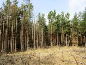 Abb. 1: Typische "Sterbelücke" durch Wurzelschwamm in einem Kiefernbestand auf einer Braunkohle-Kippe. Foto (FIB).