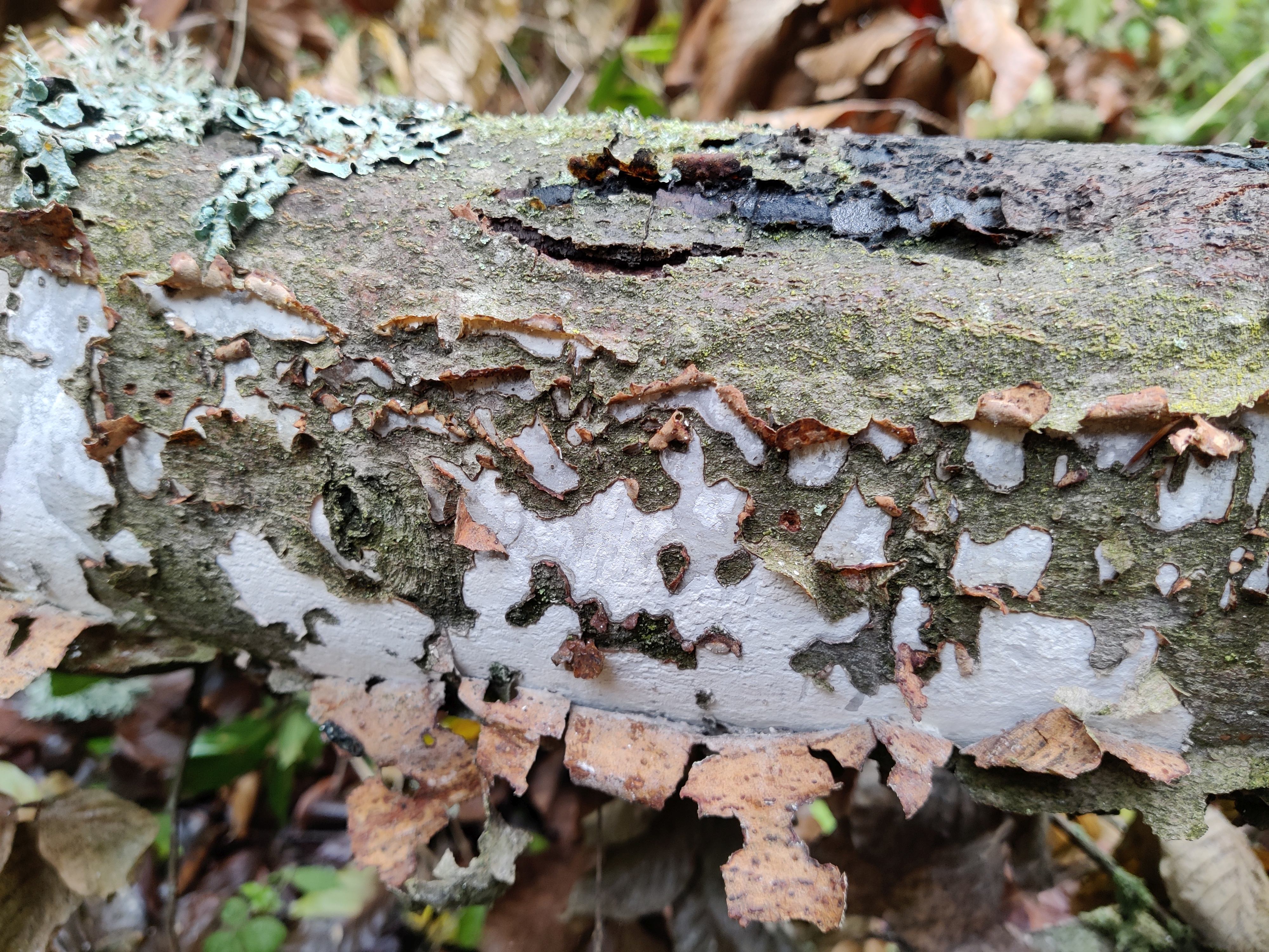 Die Buchen-Vitalitätsschwäche wird in der Regel durch abiotische Faktoren wie Niederschlagsdefizite und Hitze ausgelöst. Ab Herbst 2018 zeigten sich als Folge der Hitzesommer massive Absterbeerscheinungen an der Rotbuche. Zunächst waren nur ältere Bäume auf prädisponierten Standorten oder Bäume mit Vorschädigungen in Mitteldeutschland betroffen, nachfolgend auch Buchenbestände in anderen Regionen. In der initialen Phase der Erkrankung fruchteten typischerweise der Rindennekroseerreger Neonectria coccinea (Scharlachrotes Pustelpilzchen) und Eutypella quaternata. Der Pilz verfärbt die Borke betroffener Bäume grau bis orange und fruchtete stark mit seiner orange leuchtenden Nebenfruchtform (Libertella faginea). Bei Wassermangel kann der Wasserstrom in den Leitgefäßen abreißen und zu Embolien führen. Die betroffenen Buchen bekommen Rindenrisse, was zum Lufteintritt in das Holz führt. Dies führt zu spritzkernartigen Verfärbungen und zum Wachstum von Holzfäuleerregern im Holz. Bereits endophytisch vorkommende Holzfäulepilze wie Biscogniauxia nummularia (Pfennig-Kohlenkruste, Rotbuchen- oder Münzenförmiger Rindenkugelpilz, Abb. 6) gingen, sobald der für ihr Wachstum im Holz notwendige Sauerstoffgehalt erreicht war, in ihre schwächeparasitische Phase über. Parallel wurden die geschwächten Bäume oft von rindenbrütenden Insekten befallen. In den durch Sonnenbrand geschädigten Stammbereichen kam es zum Wachstum und zur Fruktifikation von Austernseitlingen und Spaltblättlingen, beides Weißfäulepilze.