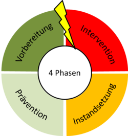 Der Umgang mit Krisensituationen erfolgt in einem 4-phasigen Zyklus. Das Bundesamt für Bevölkerungsschutz und Katastrophenhilfe (BBK) beschreibt die "notwendigen Anpassungen zur Vermeidung von, Vorbereitung auf, Erkennung und Bewältigung sowie Nachbereitung von Krisen" als Bestandteile dieses Zyklus.