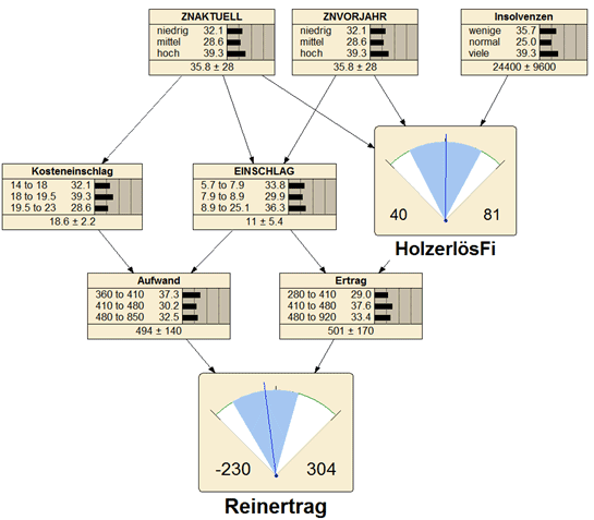 Abb. 4: Bayes-Netz im Kontext des Reinertrags eines Forstbetriebs.