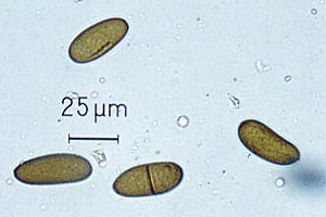 Auffälliges Mikromerkmal des Pilzes sind die relativ großen, melanisierten und damit im Durchlicht bräunlich erscheinenden Sporen, die eine Länge von bis zu 36 µm und eine Breite von 17 µm erreichen. Die Sporen dürften durch die Melanisierung relativ gut vor Austrocknung und Sonneneinstrahlung geschützt sein und aufgrund der Größe eine bessere Ausgangsbasis bei der Keimung besitzen. Dies könnte auch erklären, warum dieser Pilz durch Trockenphasen begünstigt wird und sich auch in sonst eher pilzfeindlichen Regionen wie in Marroko etablieren kann. Anfangs sind die Sporen noch einzellig, später in aller Regel zweizellig. Der Pilz ist weltweit verbreitet und wird auch regelmäßig als Schädling angesprochen.
