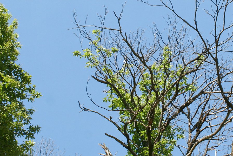 Im Splint von frisch geschlägerten Fichten mit dünnen Zellwänden sind helle, fast weiße, Bänder ("lucid bands") erkennbar (Abbildung 2, rechte Seite). Das Splintholz ist hier heller, weil bei diesen Fichten das Lignin in den Zellwänden des Frühholzes anders verteilt ist als bei gesunden Fichten und weil in diesen Bereichen kein Wasser mehr zur Krone transportiert wird. Die hellen Bänder könnten in Zukunft dazu dienen, um Bäume mit extremer Trockenheitsempfindlichkeit zu identifizieren.