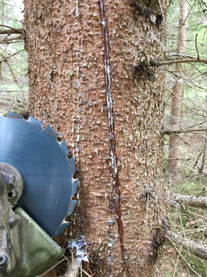 Abbildung 1. Frischer Schaftriss einer Fichte (Foto: Bo Karlsson/Skogforsk)