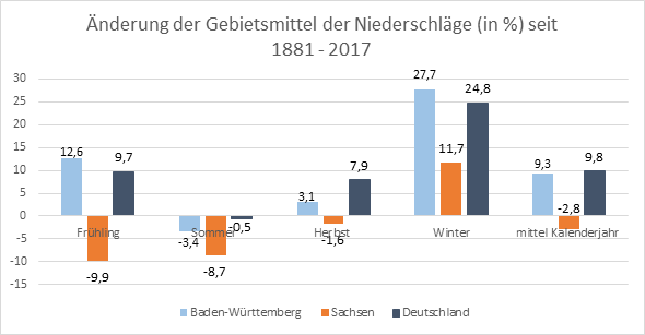 Abb. 3: Änderung der Gebietsmittel der Niederschläge seit 1881 bis 2017