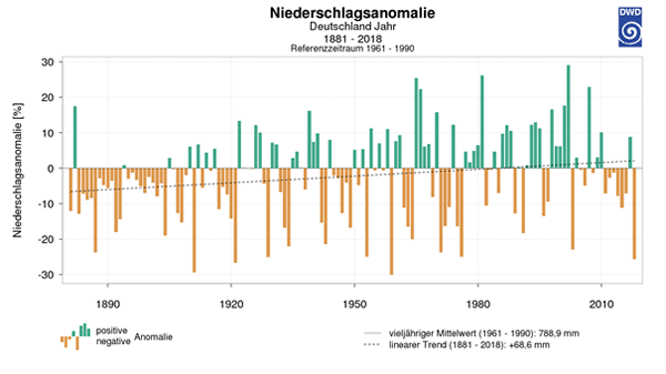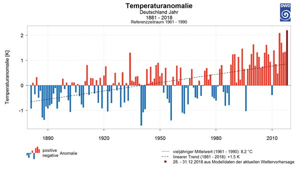Abb. 1: 2018 war in Deutschland das wärmste und gleichzeitig eines der trockensten Jahre seit Messbeginn.