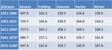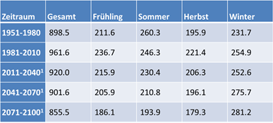 Tab. 2: Veränderung der Niederschlagsverteilung (mm/m²/a) in Calw – Schwarzwald, nach RCP 8.5 (mittel)
