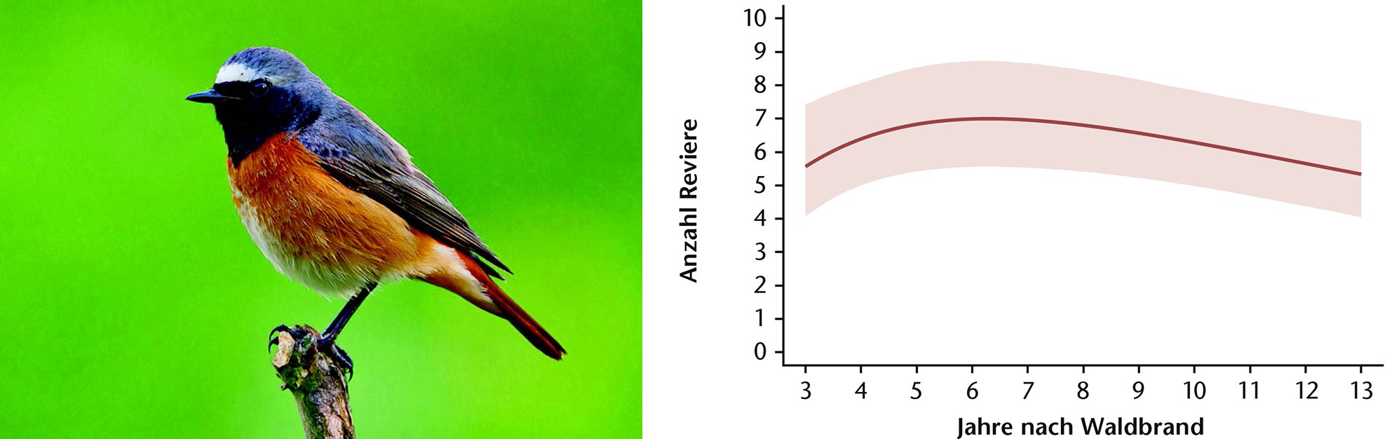 Die Studie zeigt, dass ein grossflächiger Waldbrand Vögel offener und halboffener Habitate, zu denen oft Arten der Roten Liste gehören, auch in gemässigten Regionen fördern kann.