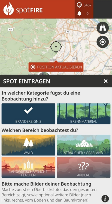 2024 wurde die Melde-App spotFIRE veröffentlicht. Sie macht die Waldbrand-Dokumentation in Österreich noch einfacher. spotFIRE ist kostenlos für Android und iOS verfügbar und kann in drei Sprachen (Deutsch, Englisch, Vietnamesisch) genutzt werden.