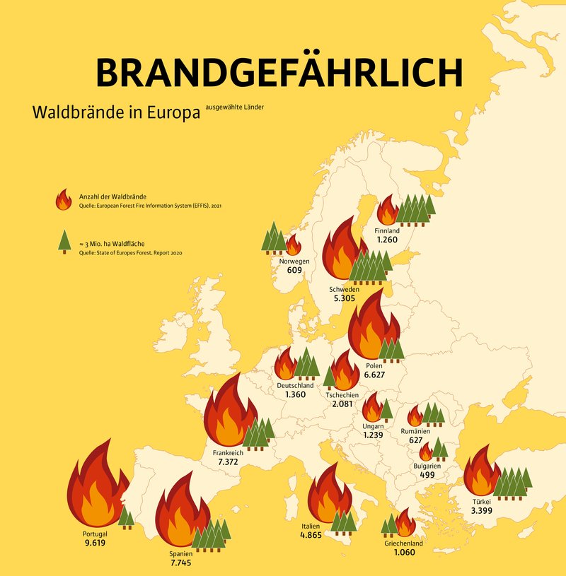 Abb. 9: Infografik zu Waldbränden in Europa (Quelle: LWF)
