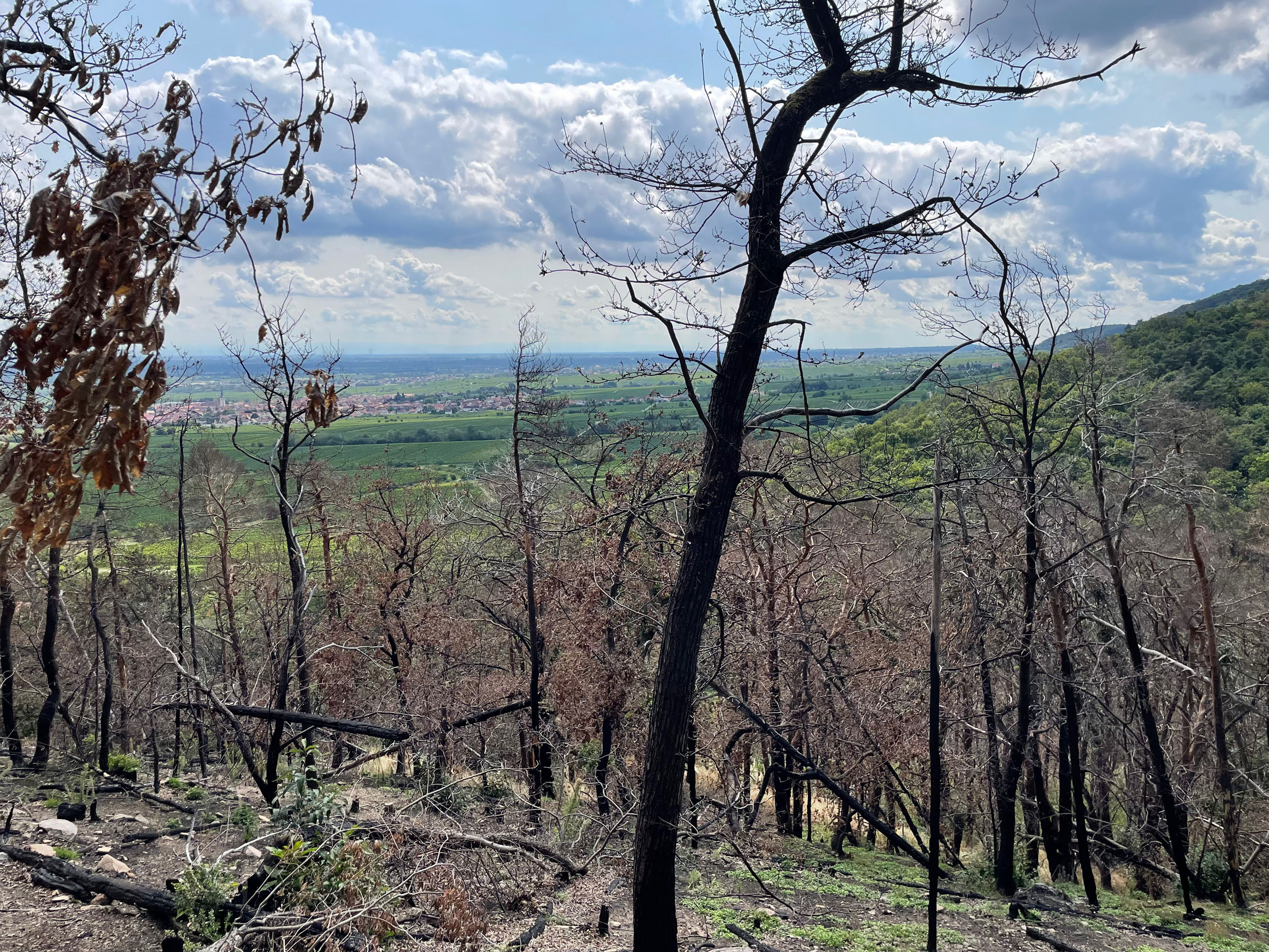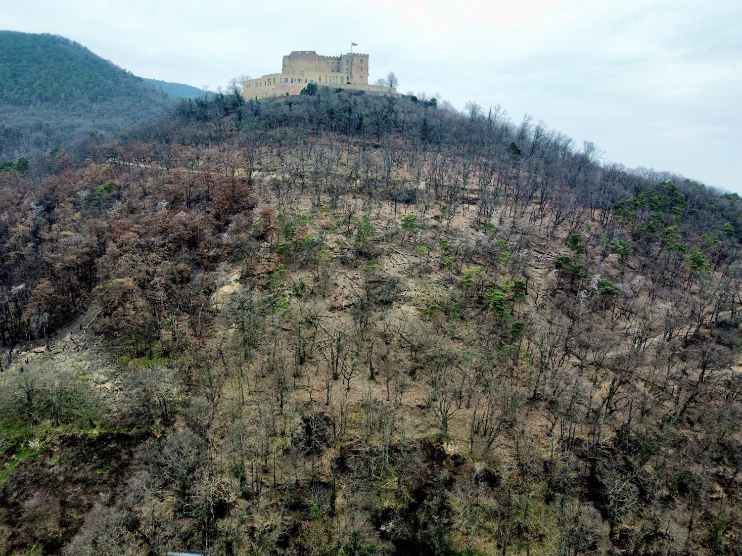 Diese Analyse untersucht die Schäden auf der mit 1,8 ha bislang größten Waldbrandfläche in Rheinland-Pfalz, die am 3. August 2022, im waldbrandreichsten Jahr des Bundeslandes, auftrat. Die Untersuchung ergab eine erhebliche Schädigung des Laub-Mischwaldes sowie hohe Einsatzkosten bei der Rettung des vom Feuer bedrohten Kulturguts Hambacher Schloss (Abb. 1).