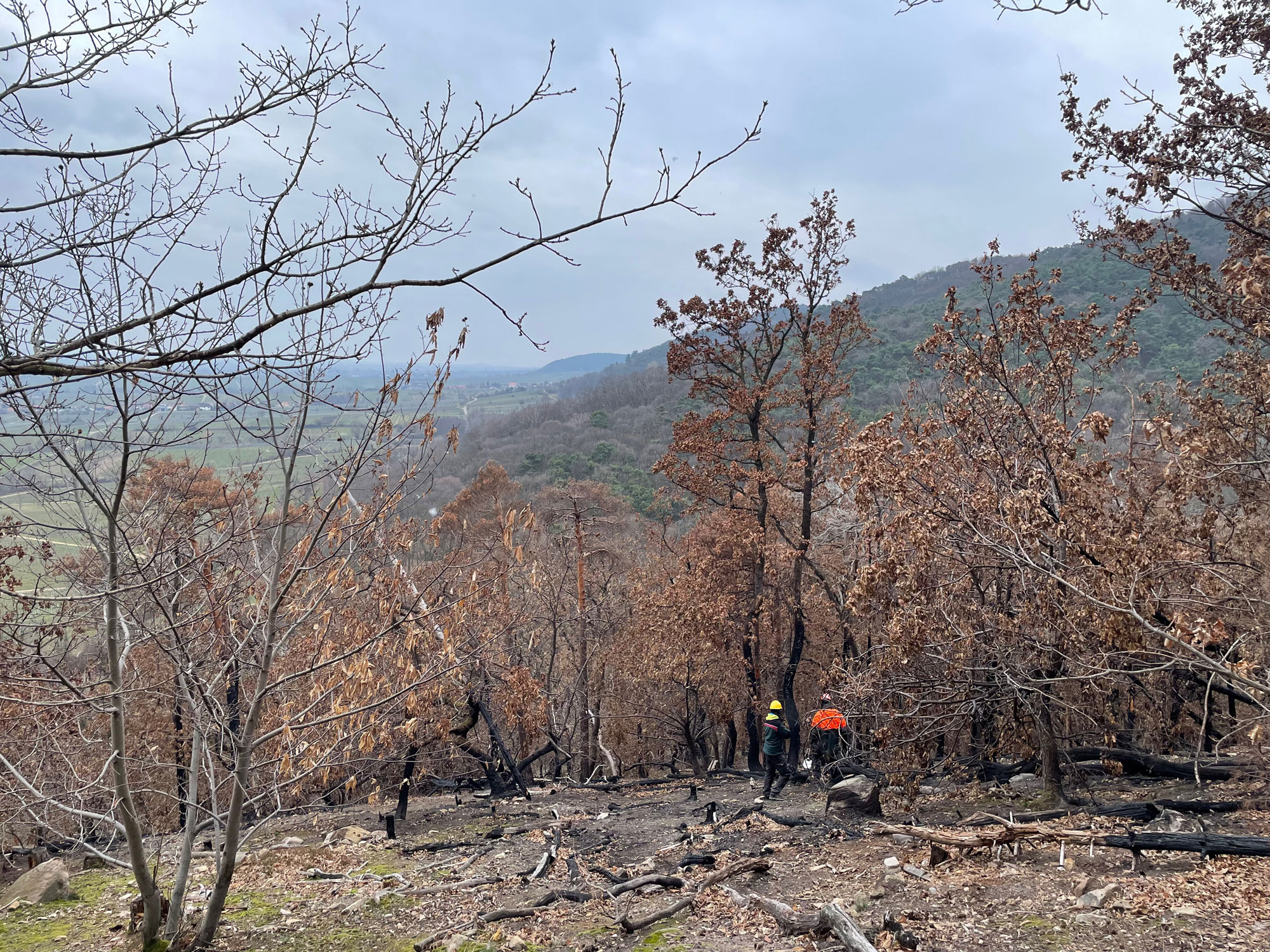 Dies geschah mittels einer Analyse der Witterung rund um den Tag des Ereignisses, einer Auswertung der in einer Vollaufnahme von 871 Bäumen erhobenen Bestandesdaten, bestehend aus Baumart, Brusthöhendurchmesser, verkohlter Höhe, Austrieb und ggf. Ringelung, einer Waldwertermittlung und einer Einsatzkostenkalkulation.