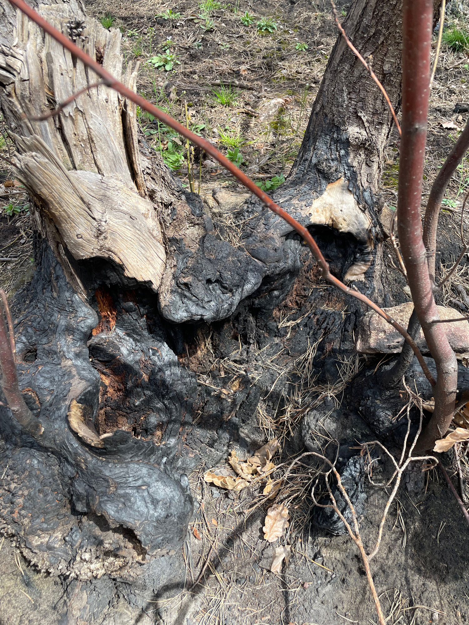 Die Waldgeschichte der Brandfläche ist nur spärlich dokumentiert, trägt jedoch zu einem besseren Verständnis ihrer Struktur und Besonderheiten bei. Zunächst belegt eine Forstbetriebskarte in den letzten 97 Jahren eine Bestockung mit Kiefern. Vorherige Aufzeichnungen deuten, bedingt durch die Siedlungsnähe, auf intensive Nutzung und die Funktion als Burghügel mit der Notwendigkeit freier Sicht zur effizienten Verteidigung [2], auf eine spärliche Bewaldung oder sogar Freiflächen hin.