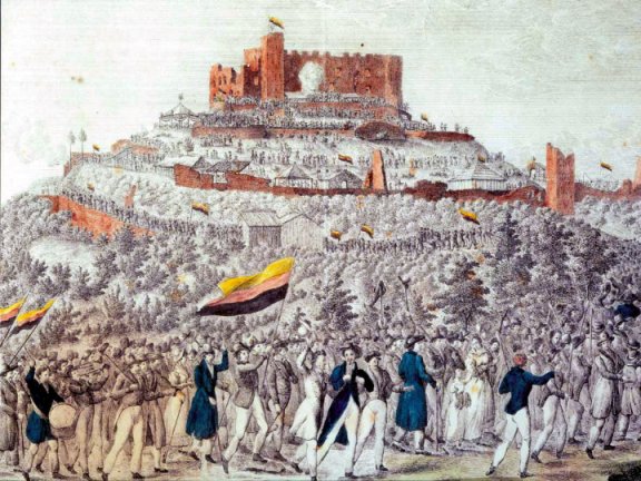 Abb. 3: Erhard Joseph Brenzinger, Hambacher Fest 1832, als gemeinfrei gekennzeichnet, Details auf Wikimedia Commons