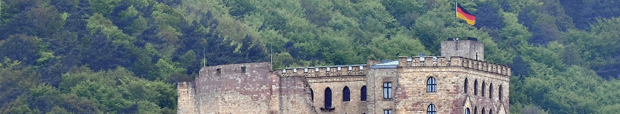 Abb. 1: Hambacher Schloss, Luftbild von Süden. (Foto: Fischer.H, Hambacher Schloss Luftaufnahme, CC BY-SA 4.0)