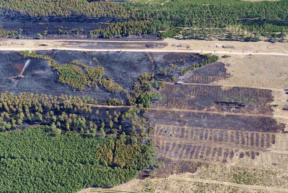 Im Gegensatz zu sehr intensiven Kronenbränden, die in Europa üblicherweise im Mittelmeerraum und in den zentralen Alpentälern auftreten, entwickeln sich in montanen Buchenwäldern der Alpen vor allem oberflächliche Lauffeuer. Diese verbrennen das am Boden liegende Brandgut wie Streu, Humusauflagen, Totholz und allfälligen Unterwuchs. Entzünden sich Feuer jedoch unter sehr trockenen, windigen Bedingungen, können ausgedehnte Waldbrände entstehen, die während der Vegetationsperiode sogar die Kronenbereiche der Bäume erfassen. Typisch für Brände in montanen Buchenwäldern sind ausserdem variierende Brandintensitäten auf sehr kleinem Raum. So entsteht ein Mosaik aus unterschiedlich stark beschädigten Flächen, darunter oft auch Inseln von unversehrten Waldpartien (Abb.1).