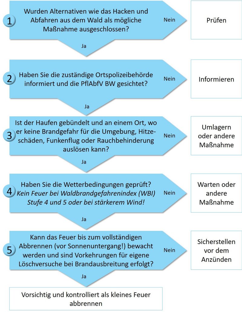 Abb. 1. Entscheidungsbaum für die sichere Durchführung der Reisigverbrennung. Grafik: FVA BW/RP Freiburg