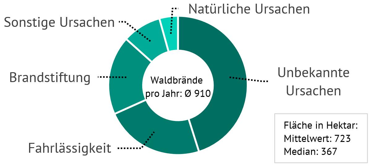 Abb. 5: Waldbrandursachen nach Anzahl von 2010-2020 (Quelle: Waldbrandstatistik, Bundesanstalt für Landwirtschaft und Ernährung