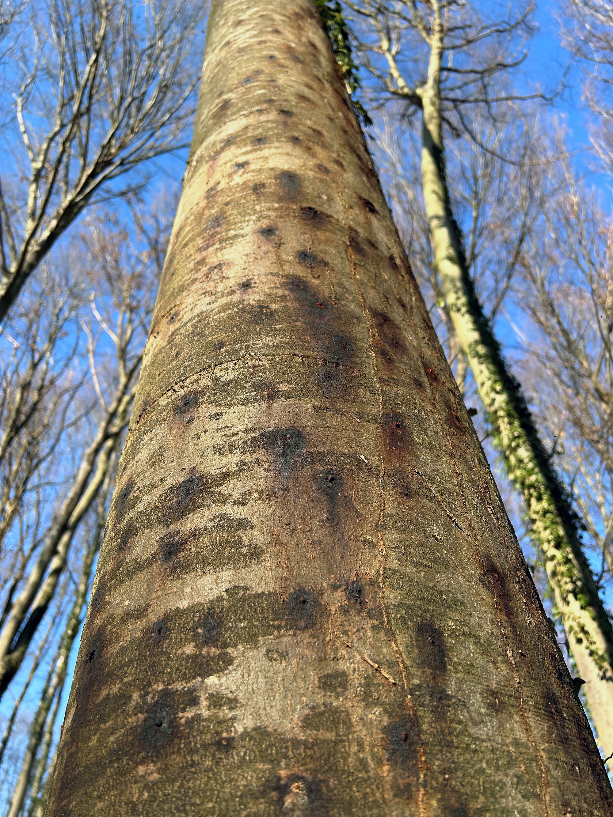 Im letzten Jahr wurde im Zusammenhang mit deutlichen Vitalitätseinbußen örtlich auch der Kleine Buchenborkenkäfer in einem außergewöhnlich starken Ausmaß festgestellt (Abb. 9). Auch über ganz Baden-Württemberg hat das aufgrund von Insektenbefall verbuchte Schadholz in 2022 zugenommen. Daran ist Beobachtungen auf Monitoringflächen zufolge mit wechselnden Anteilen auch der Buchenprachtkäfer beteiligt. Insgesamt bleibt hier abzuwarten, ob die notwendigen Abwehrkräfte der Buchen bei besseren meteorologischen Wuchsbedingungen in diesem Jahr einen weiteren Aufbau der vorhandenen Populationen rindenbrütender Käfer verhindern können. Insgesamt ist das gravierende und besorgniserregende Ausmaß der Vitalitätseinbußen auch bei der bisher gemeinhin als vergleichsweise stabil eingestuften Buche unverkennbar.