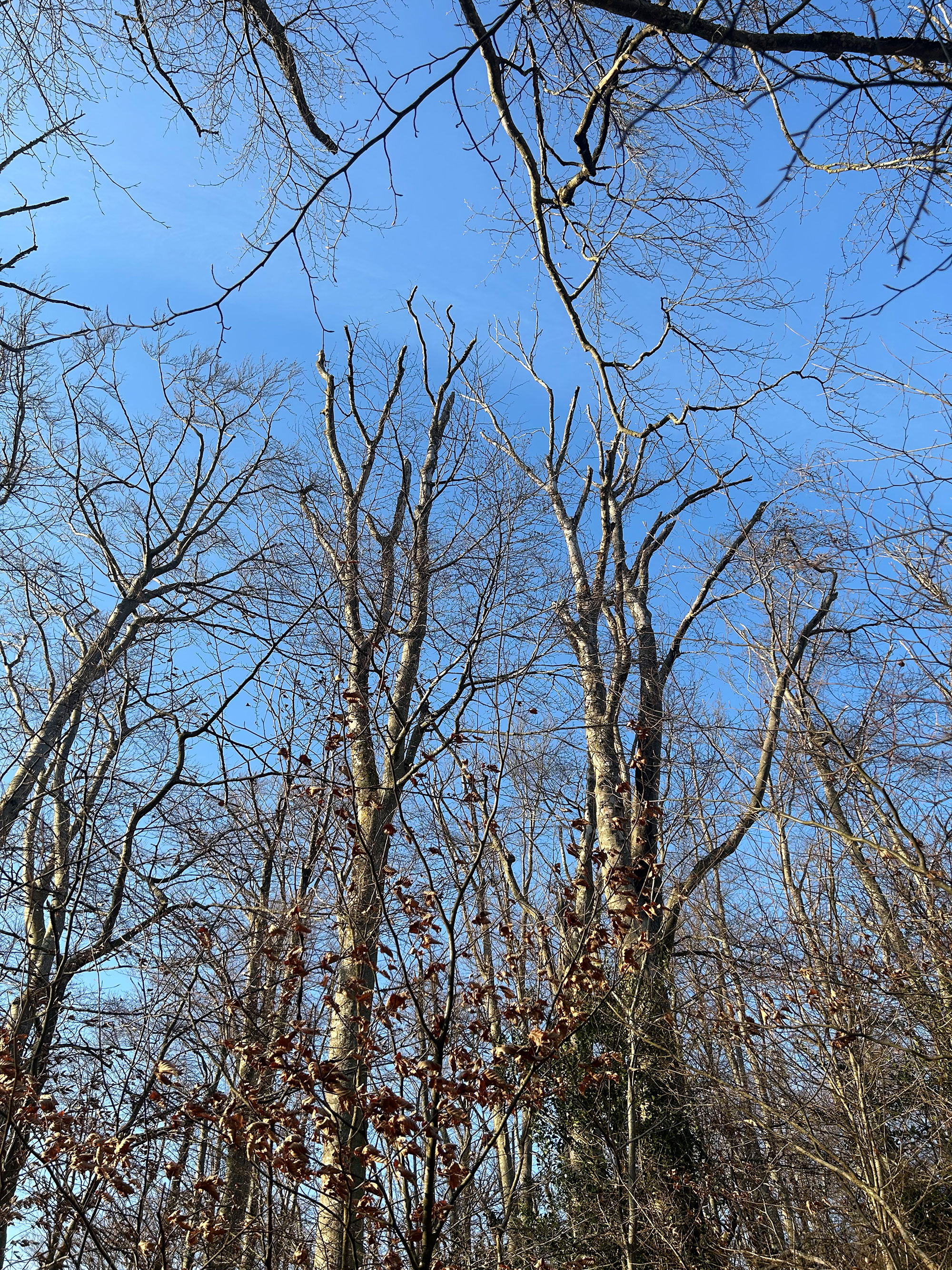 Die Buchenwälder sind als Folge der Dürreperiode 2018-23 vielerorts noch durch abgestorbene Bäume und hohe Totholzanteile gezeichnet, auch wenn sich der Kronenzustand der Buchen landesweit leicht verbessert hat [6]. Auf die Gefahren herabbrechender Äste und umfallender Buchen muss nach wie vor noch sehr geachtet werden (Abb. 7), da sie durch Pilzbefall und Holzfäulen zunehmend an Stabilität verlieren. Daran ist zum Beispiel die Pfennig-Kohlenkruste wesentlich beteiligt.