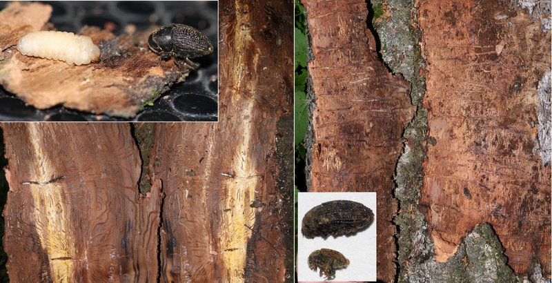 Wie schon in den Vorjahren zeigten sich 2023 lokal Buchenbestände mit einem merklichen Anteil absterbender Einzelbäume. Ähnlich wie bei den Eichen konnten die an diesen Bäumen auftretenden Sekundärschädlinge, insbesondere der Kleine Buchenborkenkäfer und der Buchenprachtkäfer, von den für sie günstigen Entwicklungsbedingungen und der verringerten Vitalität der Wirtsbäume profitieren.