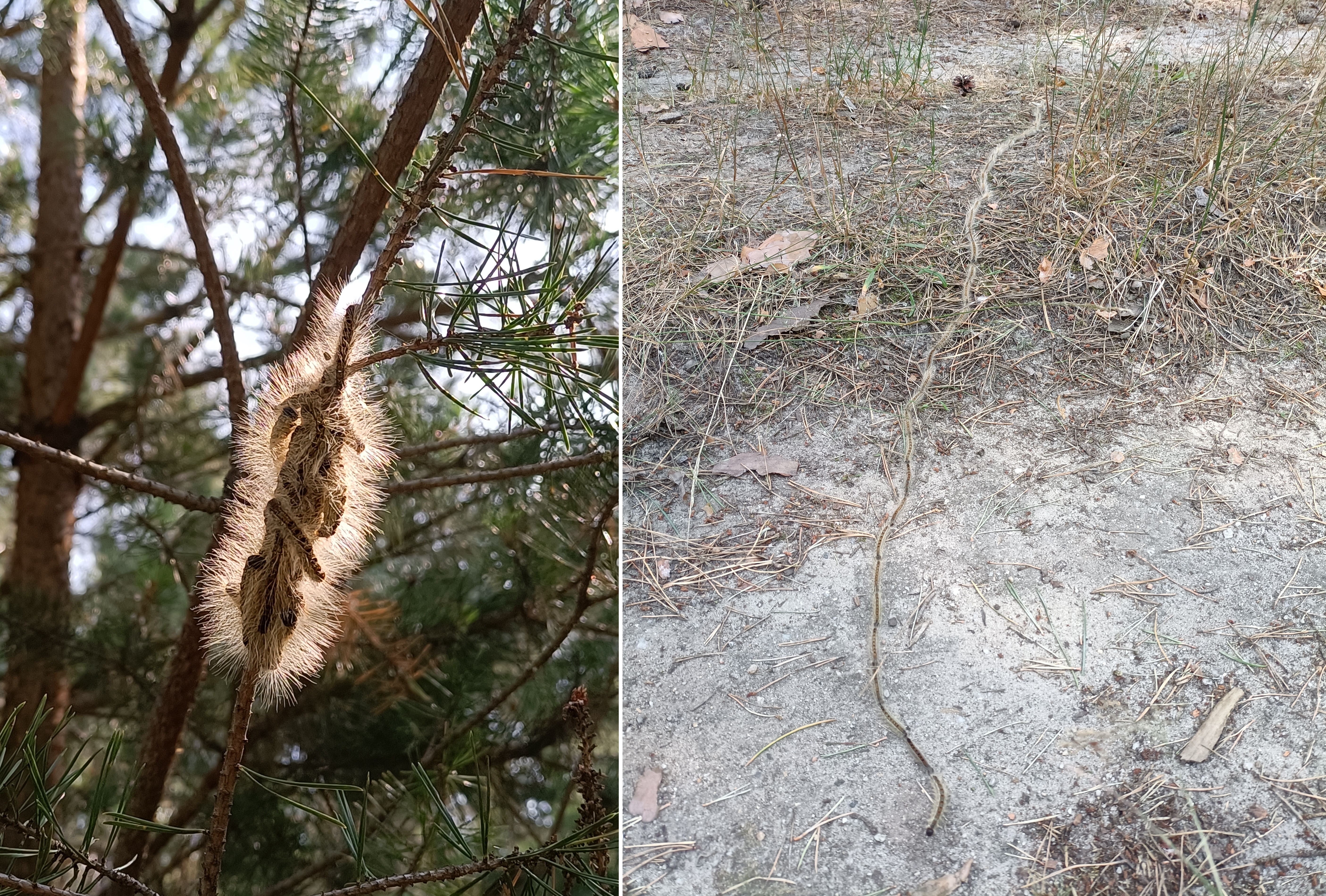 In den bekannten Vorkommensgebieten des Kiefern-Prozessionsspinners in Nordostsachsen trat diese Art auch 2023 durch Nester und die Prozessionen (Abb. 4) der vollständig entwickelten Raupen lokal auffällig in Erscheinung.