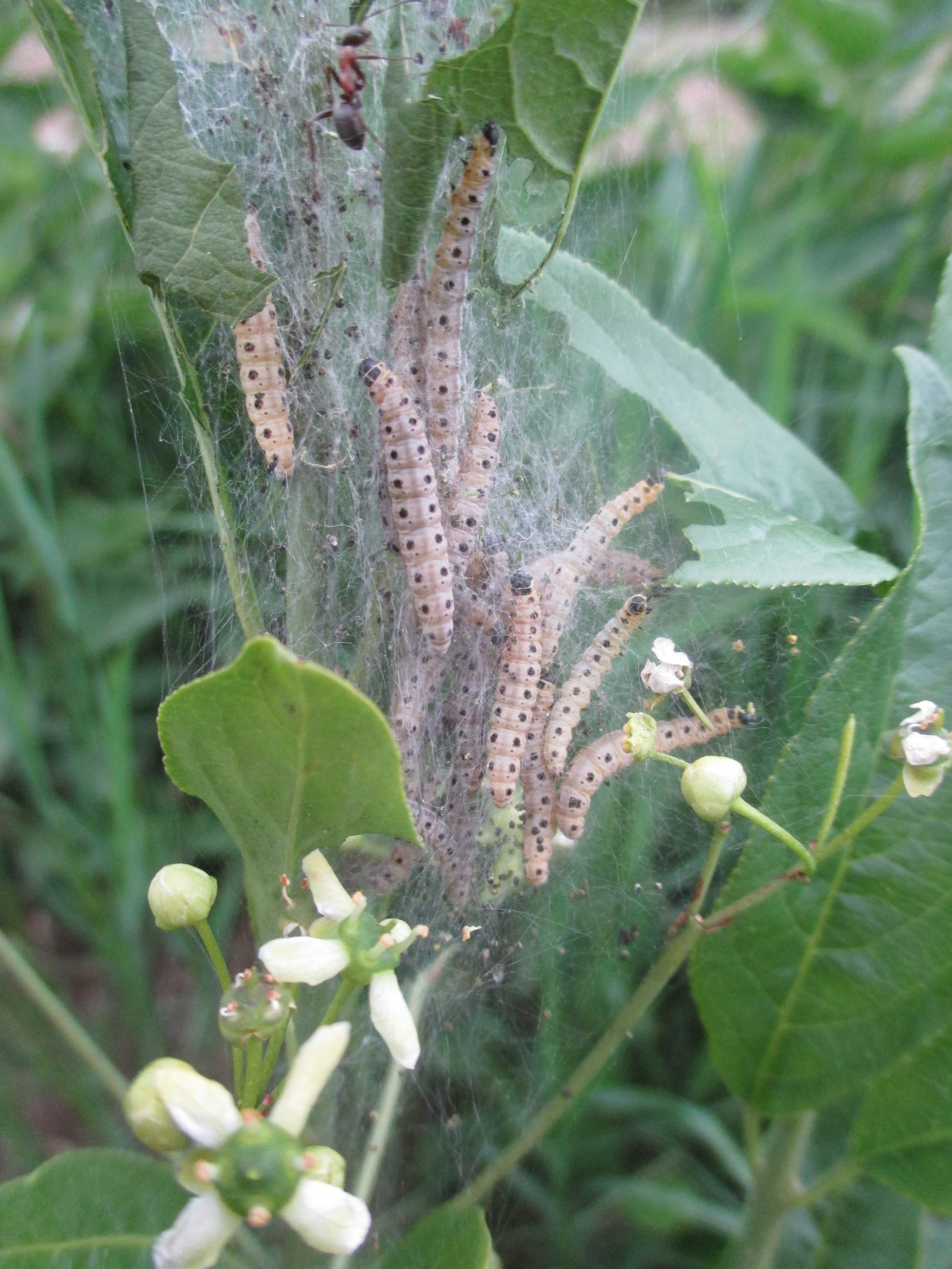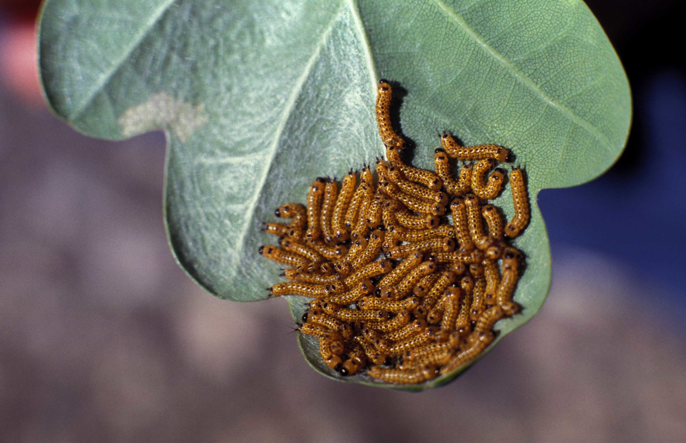 Vereinzelte Massenvermehrungen von Ringelspinner (Malacosoma neustria L.) an Eiche und Hainbuche, Mondvogel (Phalera bucephala) an Linde, Eiche und Buche und von Blattwespen der Gattung Yponomeutha und Goldafter (Euproctis chrysorrhoea) sind in der Regel nur kleinflächig und nicht bestandsgefährdend (Abbildung 3). Meist treiben die befallenen Bäumchen wieder aus.