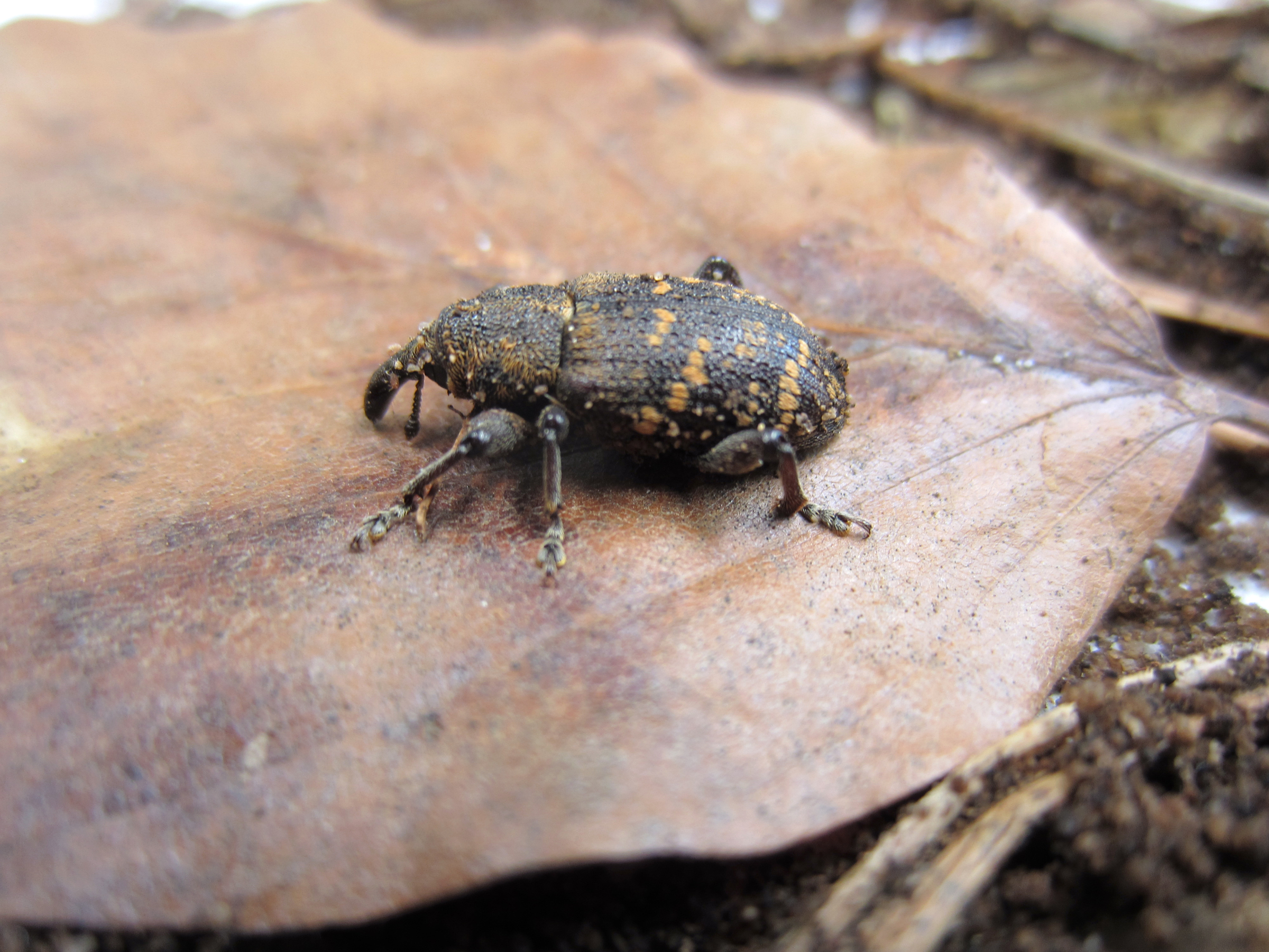 Ein weiterer Rüsselkäfer, der Kahlnahtige Graurüssler (Strophosoma melanogrammum), ist im Frühjahr gern in Eichenkulturen auf ärmeren Standorten zu finden. Die Larven leben zunächst auf verschiedenen Wirtspflanzen wie Ampfer und Drahtschmiele. Im zeitigen Frühjahr verpuppen sich die Larven. Nach dem Schlupf kommt es bereits ab März zu Fraßschäden an jungen Trieben, die wie der Pockennarbenfraß des Großen Braunen Rüsselkäfers aussehen. Des Weiteren werden Knospen vor dem Austrieb gefressen, danach kommt es neben Loch- und Randfraß zum Kahlfraß der Blätter. Der Kahlnahtige Graurüssler sitzt gerne direkt an Ästchen oder Knospen und lässt sich, wie fast alle Rüsselkäferarten, bei der geringsten Störung zu Boden fallen. Die adulten Käfer fressen das ganze Jahr und sterben nach der Eiablage im September bis Oktober ab. Traubeneichen werden meist stärker befallen als Stieleichen. Neben diesen werden auch Vogelkirsche, Eberesche, Rotbuche und Nadelholz (v. a. Kiefer) befallen.