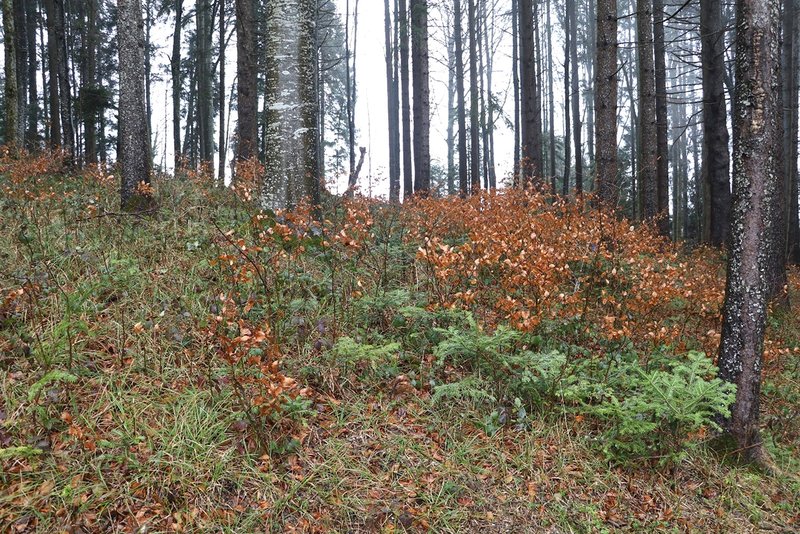 Das Bestockungsziel von 3’000 Bäumchen pro Hektar war in 99% aller Probeflächen mit einer mittleren Gesamtdichte von rund 10'000 Bäumchen/ha erfüllt. Das ist Anbetracht der Tatsache, dass von den 133 Probeflächen nur gerade 5 im Jungwuchs und Dickungsstadium waren und die mittlere Beschattung dieser Buchenwälder ungefähr 80% betrug, doch ein grosser Anteil.