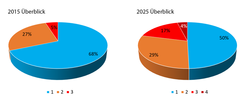 Viele Kantone haben ihre Beurteilungen des Wildeinflusses in den letzten Jahren angepasst. Die Stufen lassen sich deshalb nicht eins zu eins mit denjenigen aus dem Überblick von 2015 vergleichen. Den Einfluss des sich ändernden Klimas auf die Arten berücksichtigen mindestens BE, VS, ZH und teilweise LU und SO. Die Berücksichtigung resultiert in einem grösseren Prozentsatz der Gebiete in höheren Stufen (vergl. BE im Originalartikel).