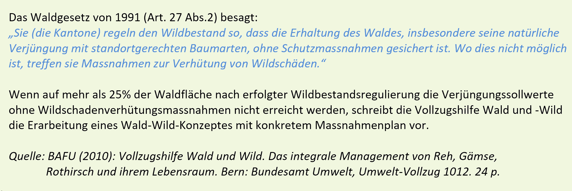 - Über seltene Baumarten - wie z.B. die Eibe - die oft beim Schalenwild besonders beliebt sind, können mittels kantonalen oder schweizweiten Inventuren keine Aussagen gemacht werden.