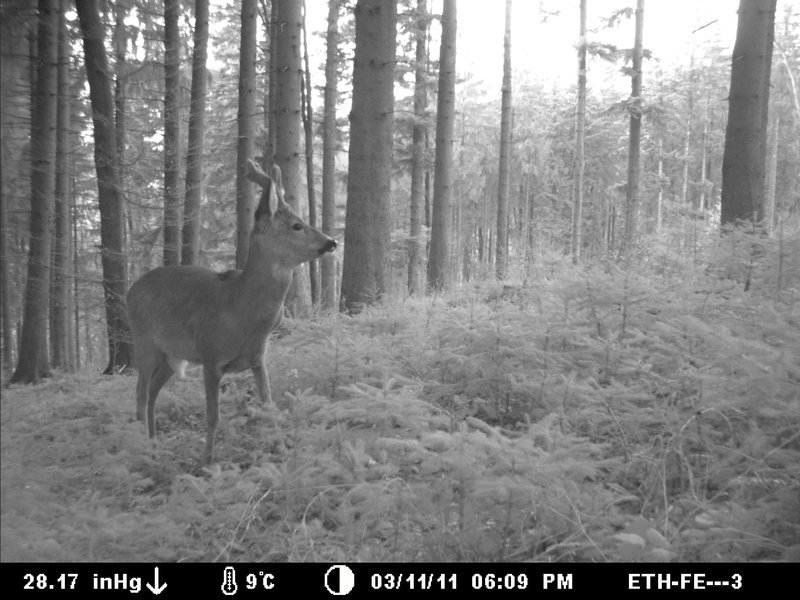 Abb. 3 - Fotofallenaufnahmen ergänzten die Beobachtungen an Naturverjüngung an drei Standorten. Hier ein Bild aus Russikon. Foto: Andrea D. Kupferschmid (WSL)