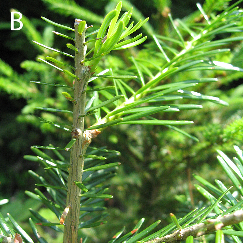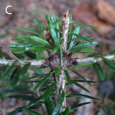 - Wenn der Verbiss so stark ist, dass fast keine grünen Nadeln mehr zurückbleiben, sterben junge Tannen verbissbedingt ab, weil sie ihre Reserven überwiegend in den grünen Nadeln speichern (Abb. 9D). Totverbiss trat bereits nach einmaligem starkem Verbiss bei 3 bis 20% der Tannensämlinge auf. Über Jahre wiederholter starker Verbiss kann deshalb zum Totalausfall der Tanne führen.
