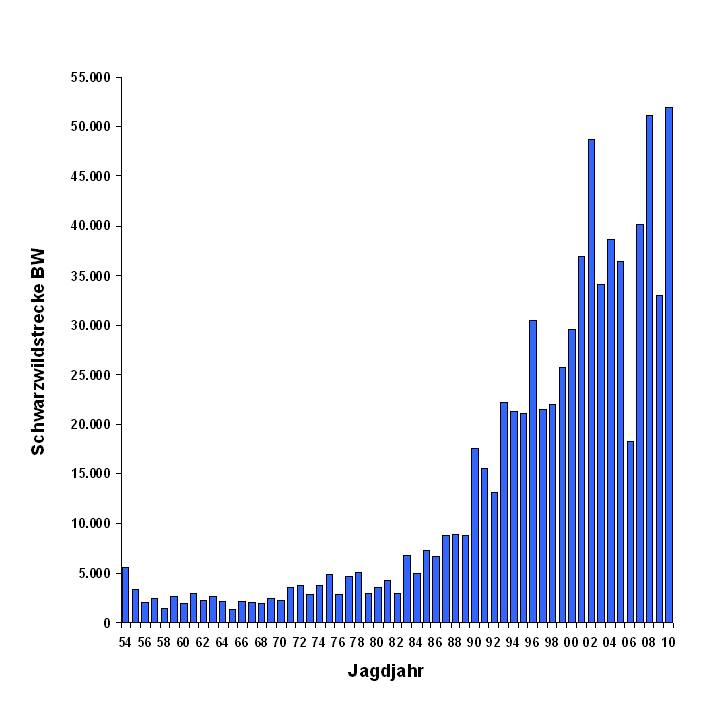 Abb. 1: Entwicklung der Schwarzwildstrecke in Baden-Württemberg 1954 bis 2010.
