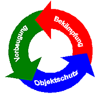 - Vorbeugung (Prophylaxe): Maßnahmen, mit denen die Entstehung eines Schadens verhindert werden soll (z. B. saubere Waldwirtschaft, naturnaher Waldbau). Im konkreten Fall nach dem Sturm betrifft dies die Aufarbeitungsstrategie bzw. die Aufarbeitungsreihenfolge des Sturmholzes.
