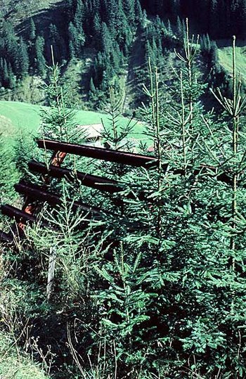 Um dem Rückgang der Schutzwälder entgegenzuwirken, wurden laut einem Artikel der ÖBf allein im Jahre 2011 über 600.000 Jungbäume in Schutzwäldern Österreichs gesetzt. Gepflanzt werden neben Fichte vor allem Baumarten wie Lärche, Zirbe oder Tanne, welche die Wälder stabiler machen. Die Fichte eignet sich für den Lawinenschutz besonders gut. Die Bäume stehen dicht, der Schnee bleibt in den Kronen hängen, während die Lärche, die im Winter keine Nadeln trägt, besonders sturmfest und steinschlagresistent ist.
