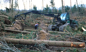 | Im Rahmen der Aufarbeitung des Sturmholzes ist es gelungen, Schäden an Boden und Bestand durch Befahrung zu vermeiden. | > | Trotz flächigem Holzanfall hat die pflegliche Aufarbeitung der Sturmflächen Vorrang. Regelungen zur Einhaltung der Pfleglichkeit bei der Aufarbeitung wurden bereits im Januar aufgestellt: |