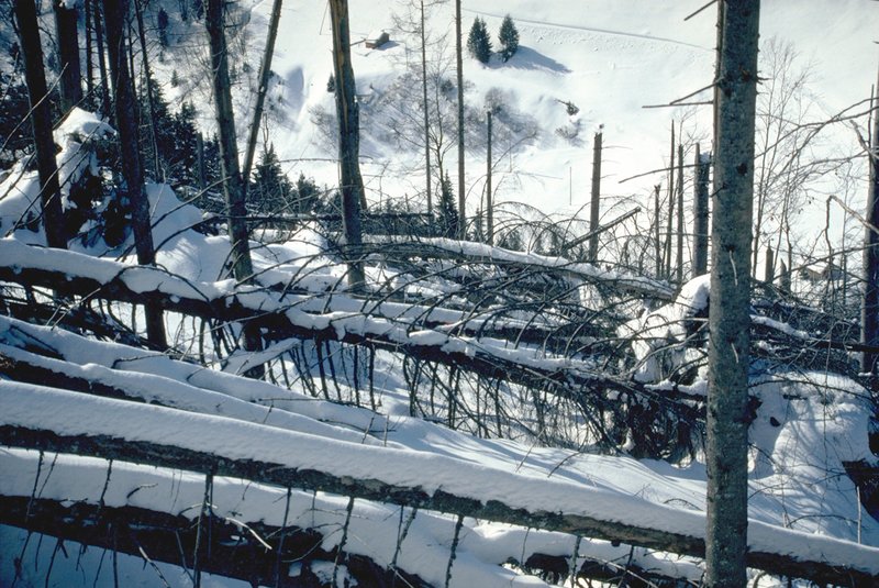 Abb. 3 - Sturmschäden am Zürichberg zwei Monate nach Lothar im Februar 2000. Lothar hat von allen bisherigen Stürmen mit Abstand am meisten Schäden verursacht. Foto: Daniel Karbacher