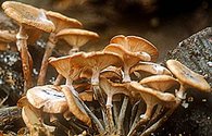 Hallimasch (Armillaria sp.) ist vor allem als direkter Trockenstress-Folger bei Buchen bekannt. Außer an den Fruchtkörpern ist die Gattung durch ihre schwarzen, zähen Mycelstränge (Rhizomorphen) zwischen abgestorbener Rinde und Holz des Stammes leicht zu erkennen.