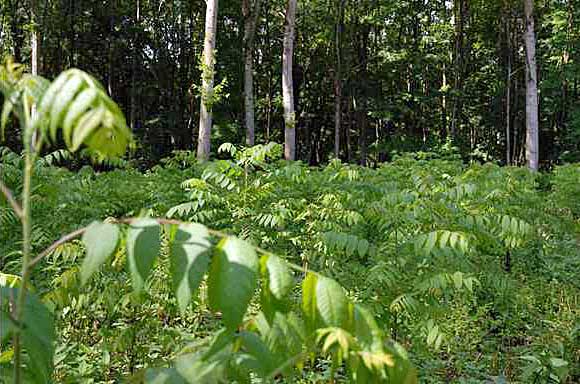 Abb. 9: Schwarznuss-Trupppflanzung, 70 Trupps/ha, je Trupp 13 SNu im Verband 2 x 2 m. (Foto: Leonhard Steinacker)