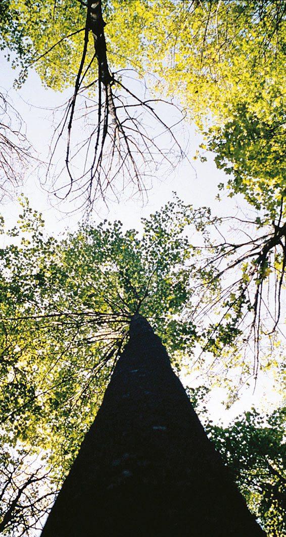 Abb. 3 - Beispiel für einen kostengünstigen Eingriff: Z-Baum (hier Linde), 3 Jahre nach der Ringelung der Konkurrenten. Lehr- und Forschungswald der ETH