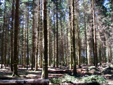 Abb. 2: Vfl. D 11c im ehem. Forstbezirk Riedlingen: Beh. 1 (2500 Fi / ha) - ohne Durchforstung.
