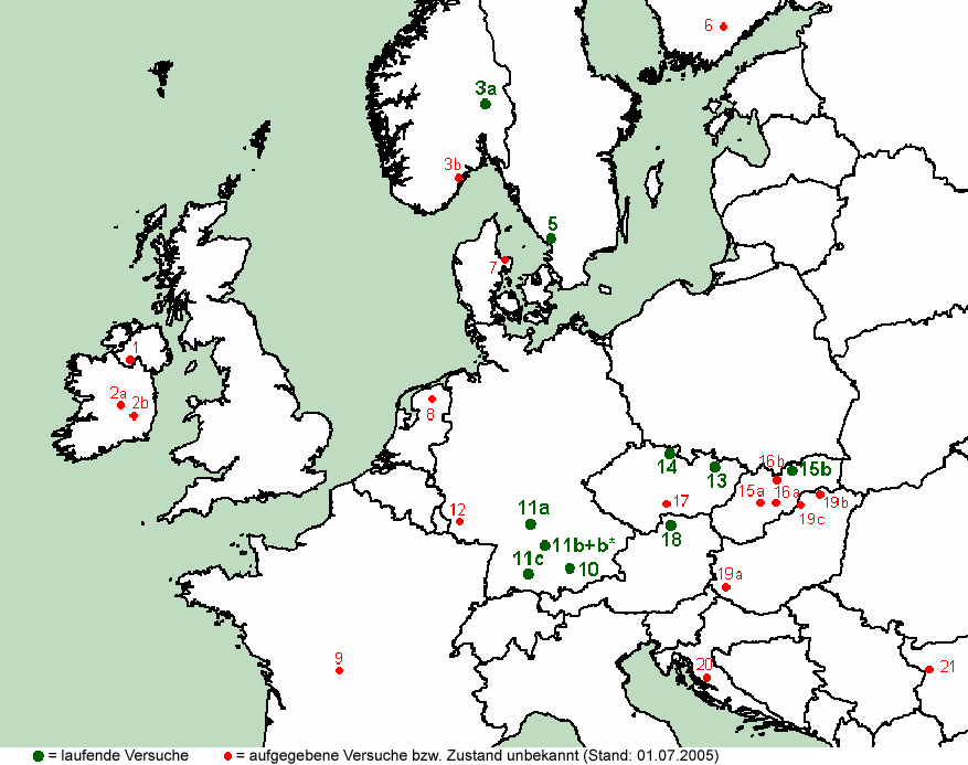 Zwischen 1969 und 1976 wurden auf einer Fläche von 75 ha in 15 europäischen Ländern 28 Versuche (Abb. 1) mit 458 Einzelfeldern angelegt. Dass die damals nahezu undurchlässige politische Grenze zwischen Ost und West kein Hindernis für eine gemeinsame fachliche Zusammenarbeit darstellte, ist hierbei besonders bemerkenswert.