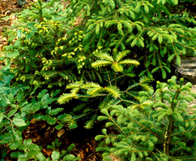 Abb. 2: Aus einer gemischten Fichten-Buchen-Tannen Verjüngung sollen strukturierte und stabile Bestände entstehen (Foto: Archiv LWF).