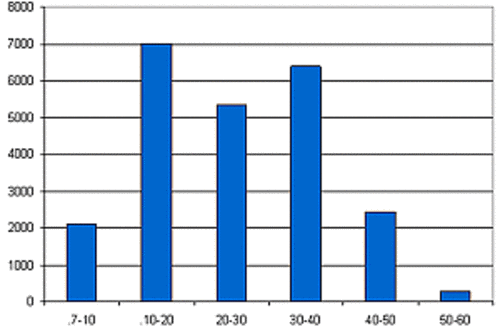 Abb. 3: Birkenvorrat nach BHD-Klassen im Landkreis Tübingen.