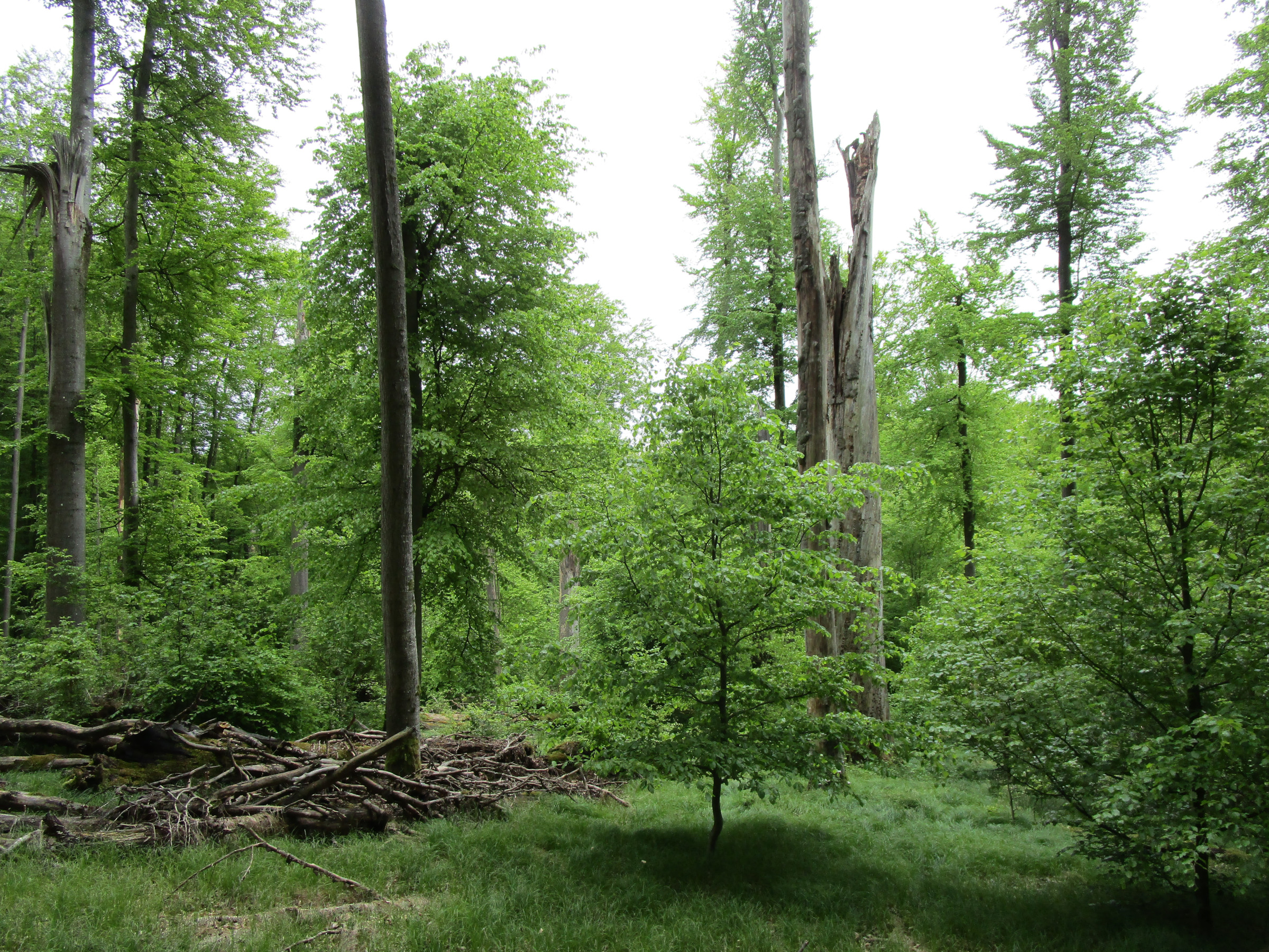 - Strukturvielfalt: Einheitlich strukturierte Bestände bergen ein hohes betriebliches Risiko. Strukturvielfalt ergibt sich neben kleinflächiger Baumartenmischung durch unterschiedliche Baumstärken, Bestandsdichte und Höhenschichtung in Beständen.