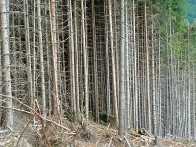 Abb. 1: Stammzahlreicher, nicht durchforsteter Fichtenbestand