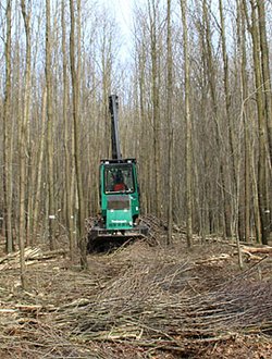 Schonender Harvestereinsatz in Eichen-Erstdurchforstung