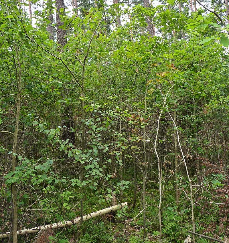 Bestand: Eichen-Roterlen-Bestand mit Birke, Vogelkirsche und Kiefer;