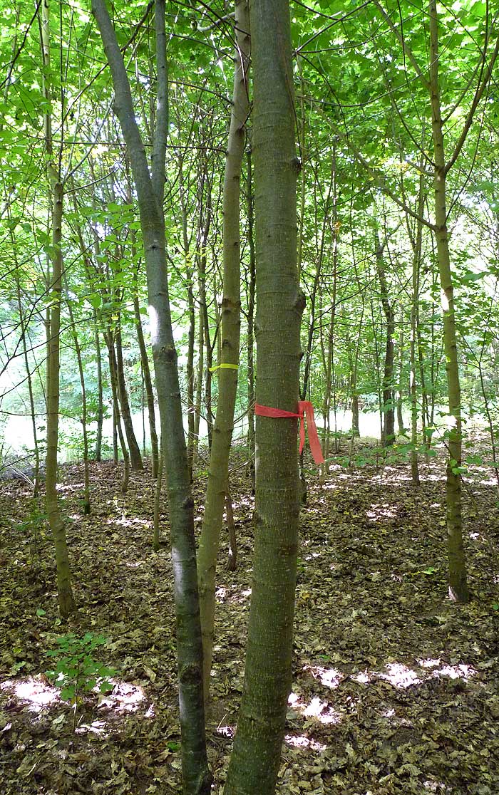 4. Markierung zwieseliger, durchstechender Linden im Zwischenbereich (sollen hüfthoch geköpft werden)